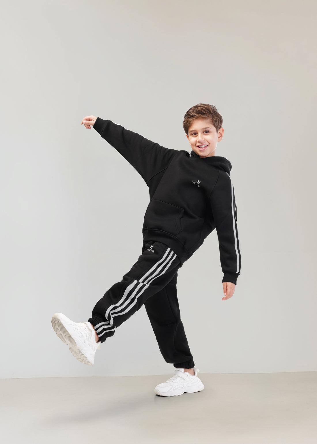 Elevate your child's wardrobe with our premium Striped Melton Set in classic black. This sophisticated...