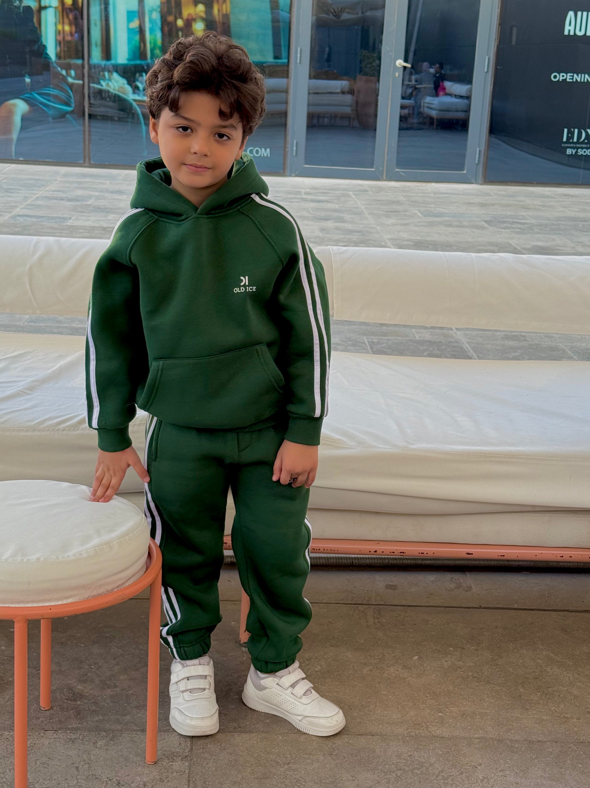 Elevate your child's wardrobe with our premium Striped Melton Set in classic Forest Green.
