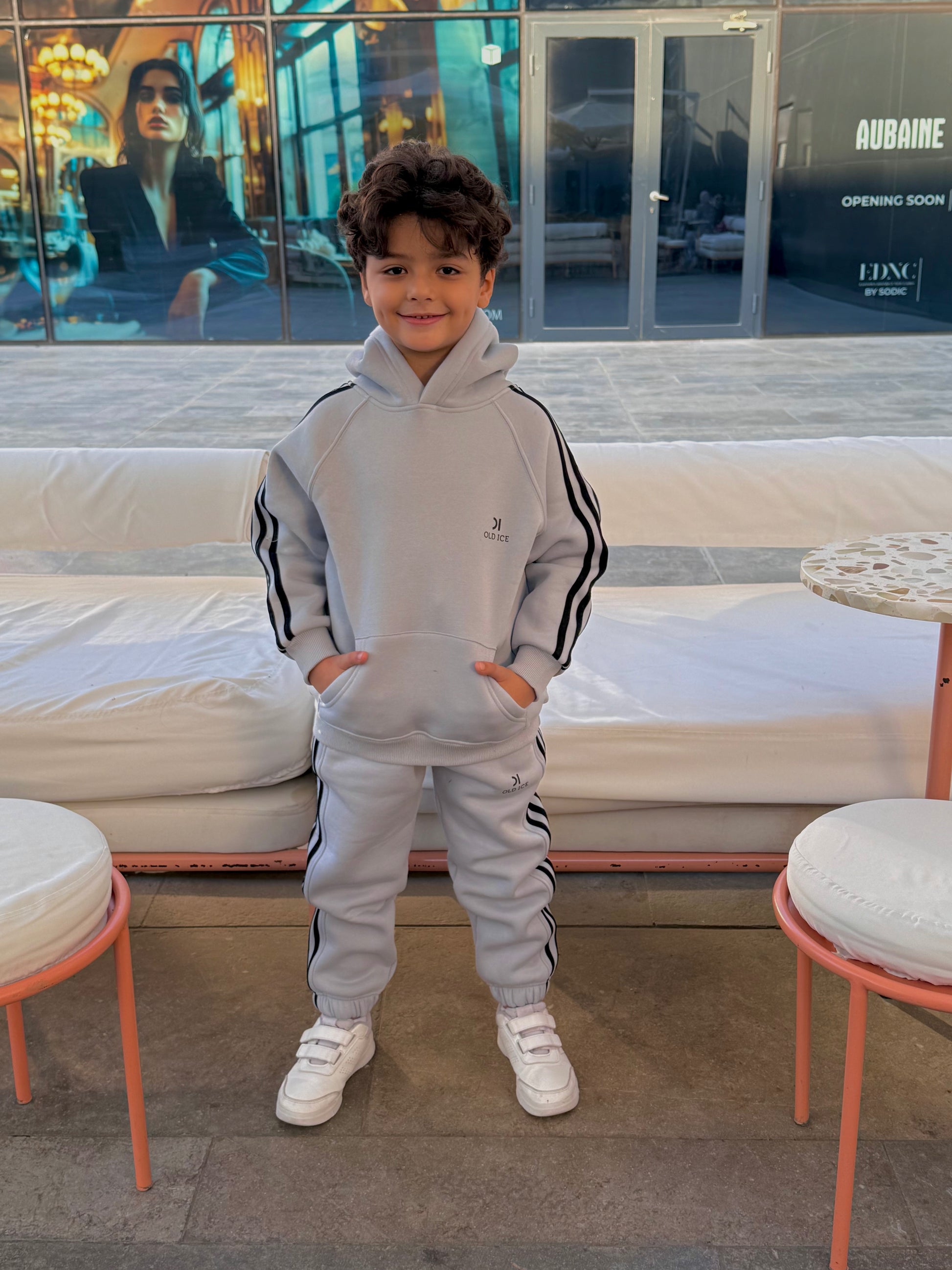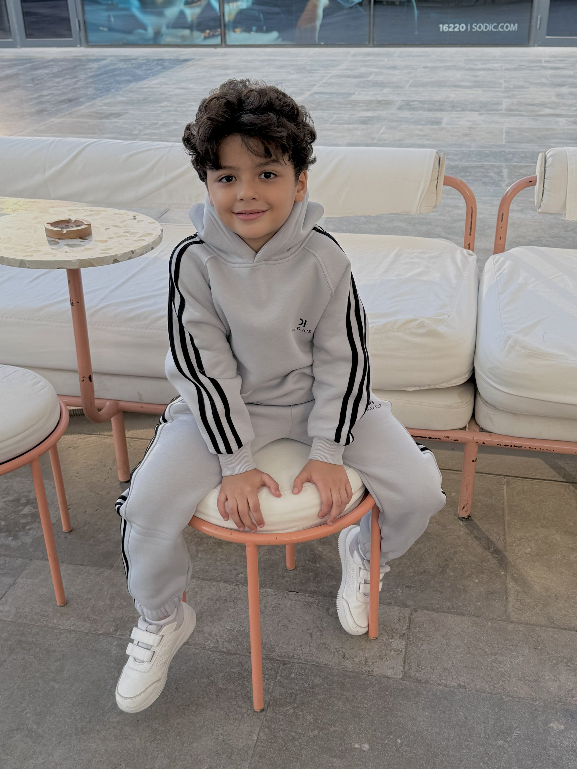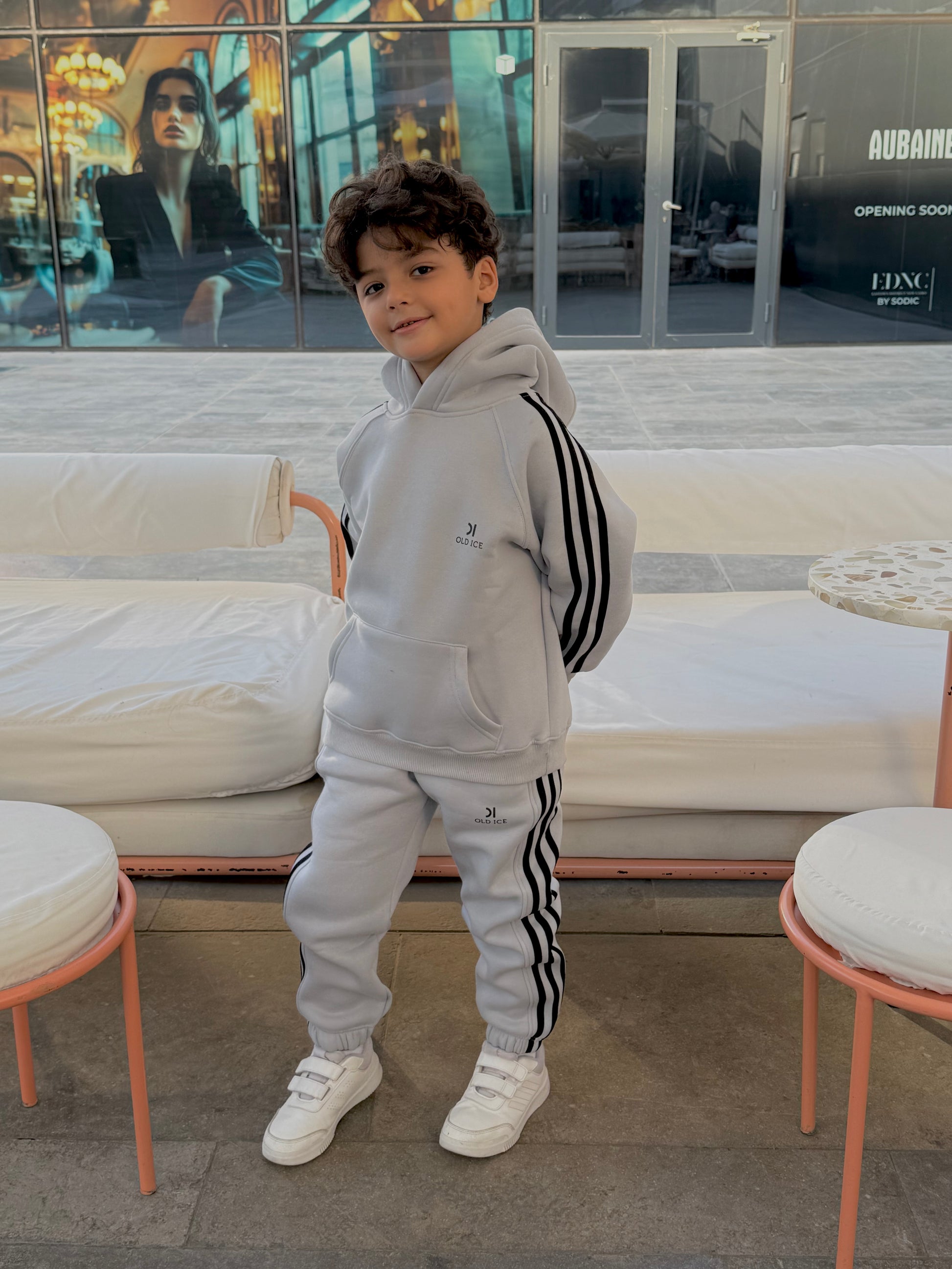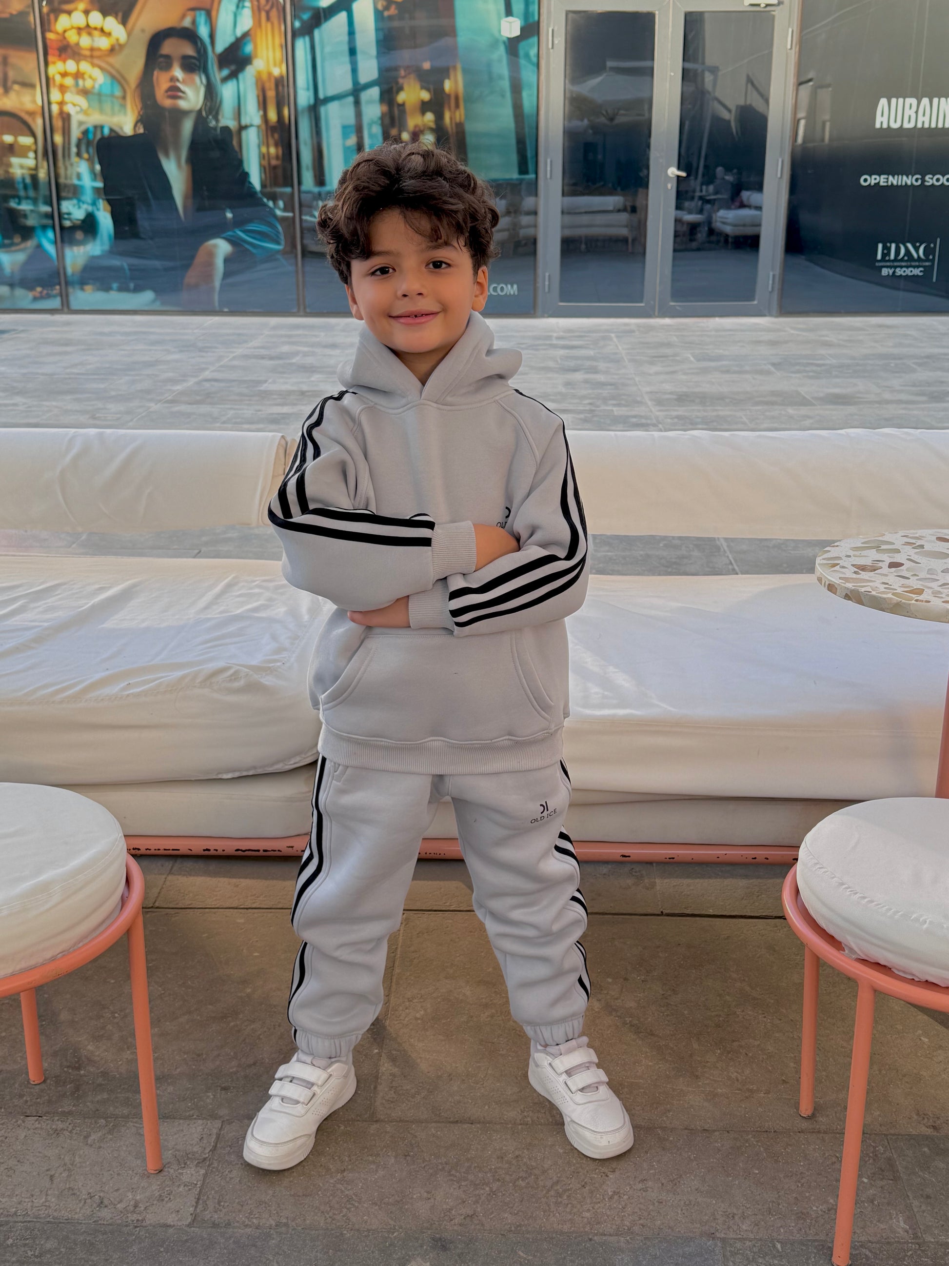 Elevate your child's wardrobe with our premium Striped Melton Set in classic Gray.