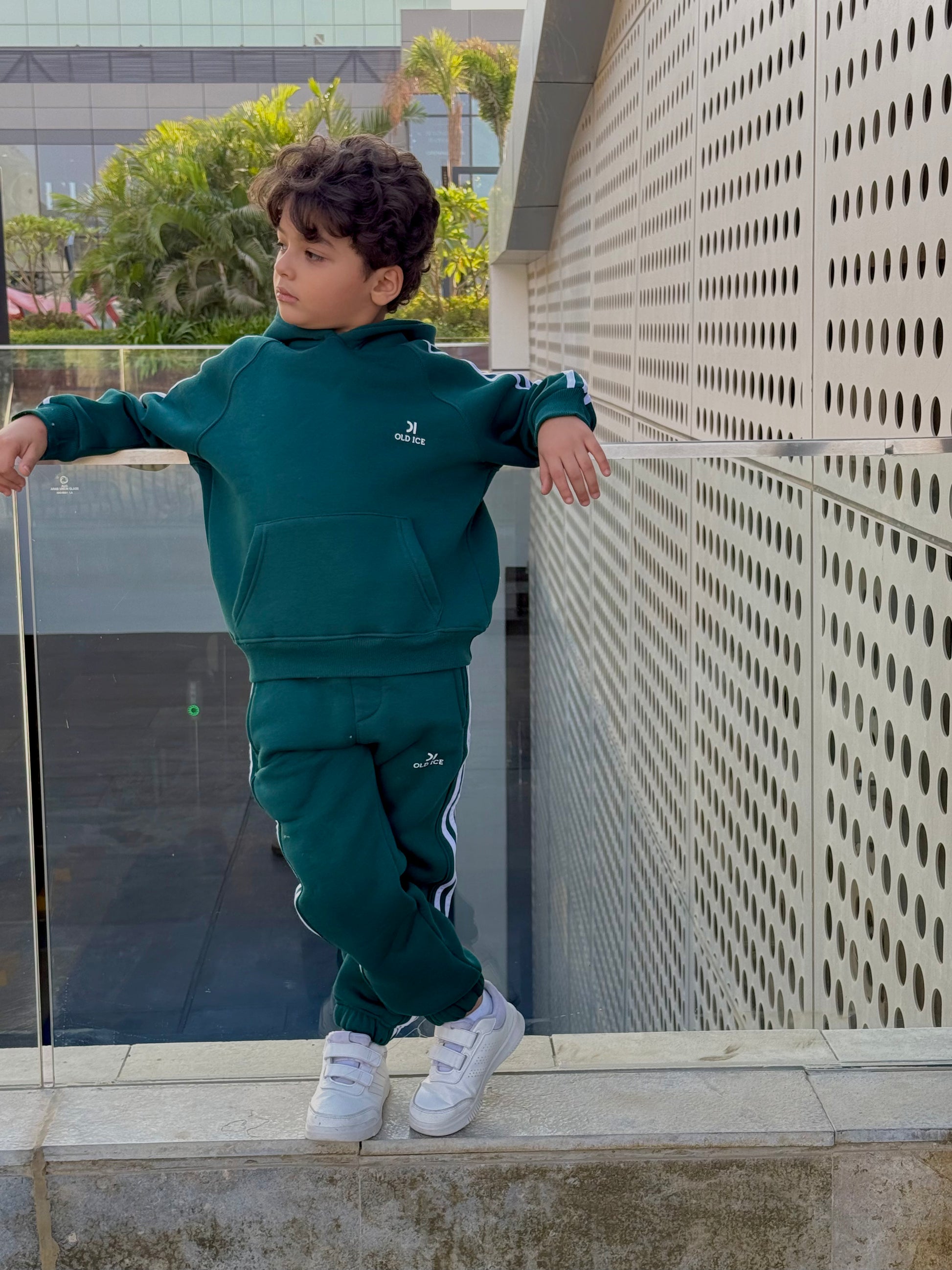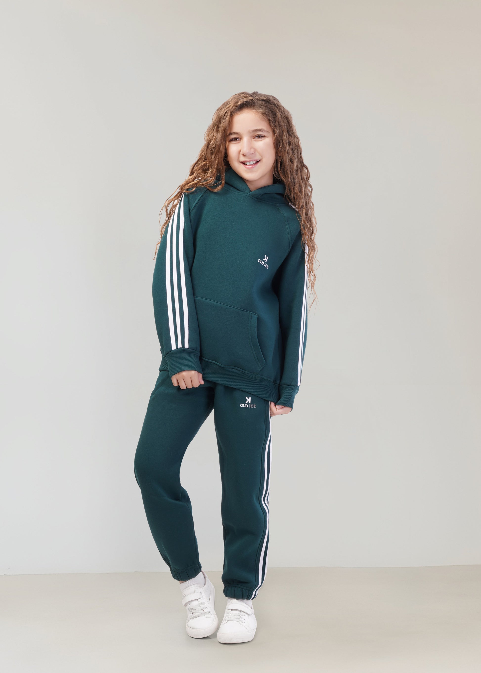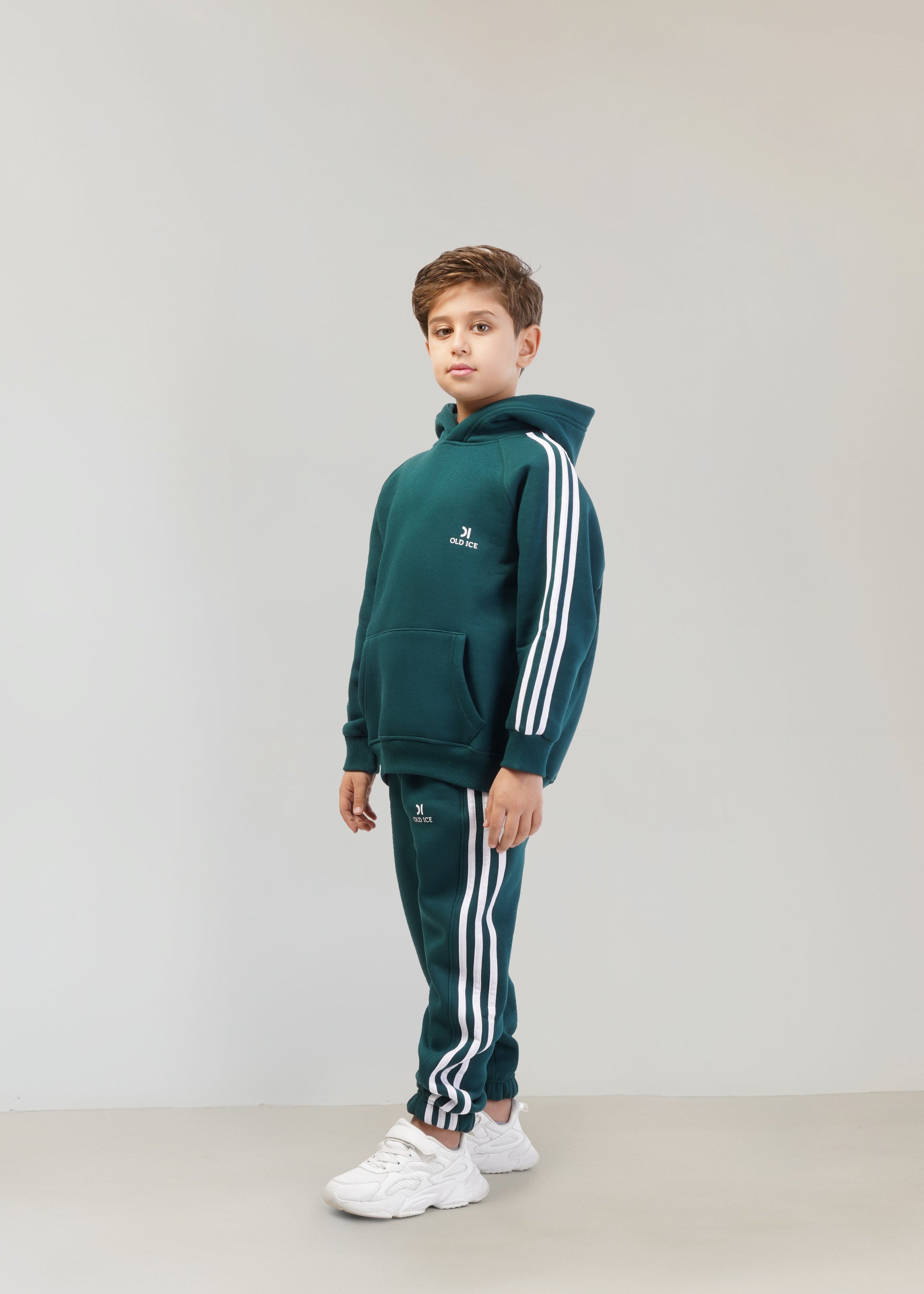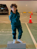 Elevate your child's wardrobe with our premium Striped Melton Set in classic teal Green.